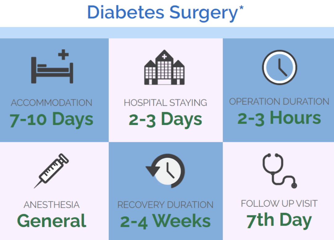 Diabetes surgery is aim to eliminate insulin resistance in the body. Insulin is used to treat Type 1 diabetes but in the case of Type 2, a change in lifestyle, diet, and medication is required and if organ damage has begun, surgery is required.